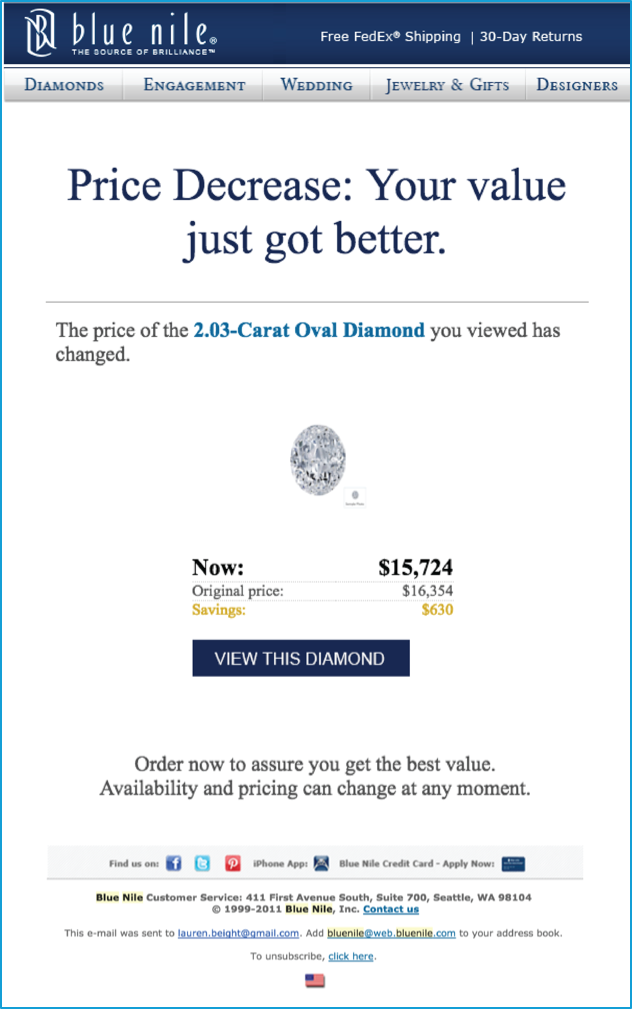 3 Price Decrease Email Best Practices from Blue Nile Diamonds