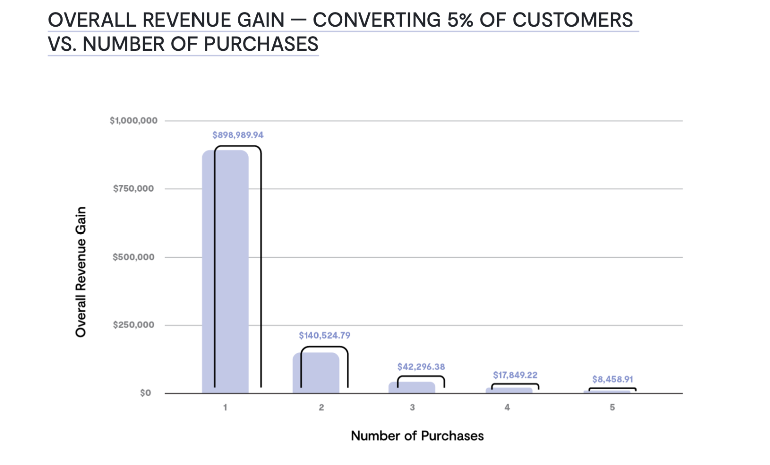 What’s even more daunting is all of the privacy changes coming over the next few years (think Chrome’s pending end of support for third-party cookies and iOS15). With that, loyalty is even more critical. You need to get smart about the data you have now to bring shoppers back, again and again. Because the more often they buy, the higher their lifetime value. In fact, we found that the second purchase delivers a massive boost in lifetime value at 101%.