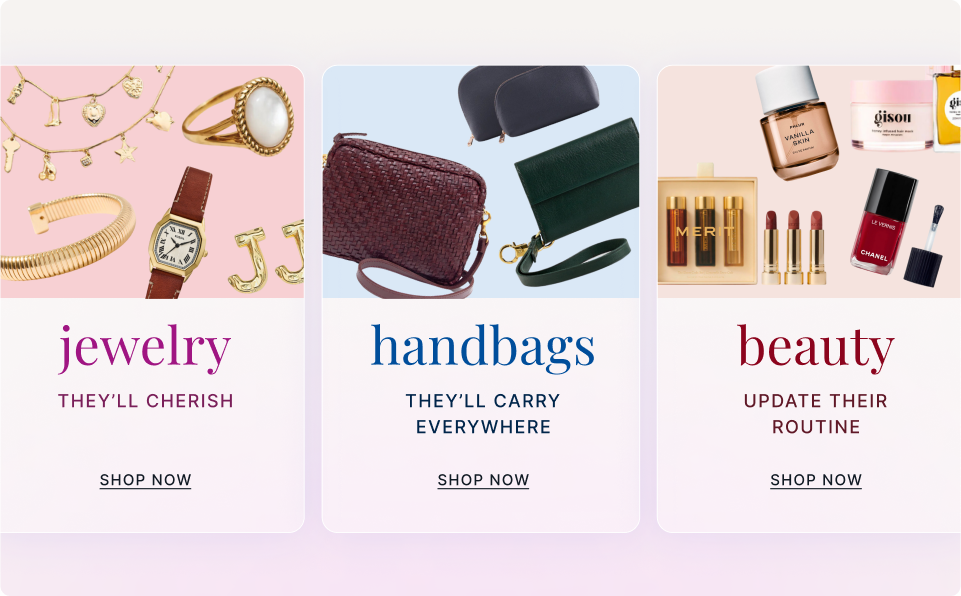 Luckily, there are plenty of product recommendation strategies that can effectively convert new visitors. Gift guides, in particular, are tailor-made for Valentine’s Day. They make it easy to introduce new shoppers to your brand while highlighting your best sellers and hot new arrivals. Gift guides also provide the opportunity to expose shoppers to different categories and products.