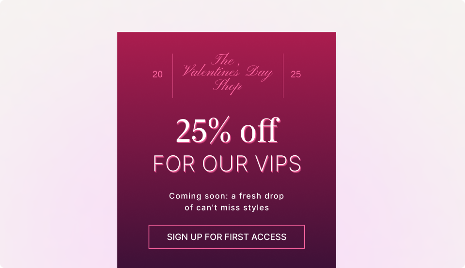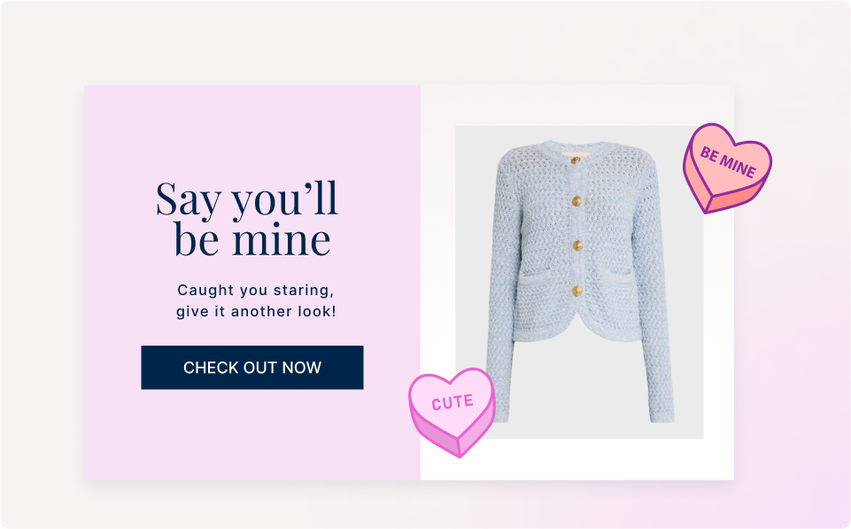 To boost chocolate sales, Richard Cadbury (yes, that Cadbury) leaned into the theme and thought of the now omnipresent heart-shaped box in 1868. Of course, there are countless ways to incorporate Valentine’s Day messaging into your campaigns without inventing a new product. You can add dating app-style swipe functionality to improve product discovery onsite or give your triggers a thematic twist for the next few weeks.