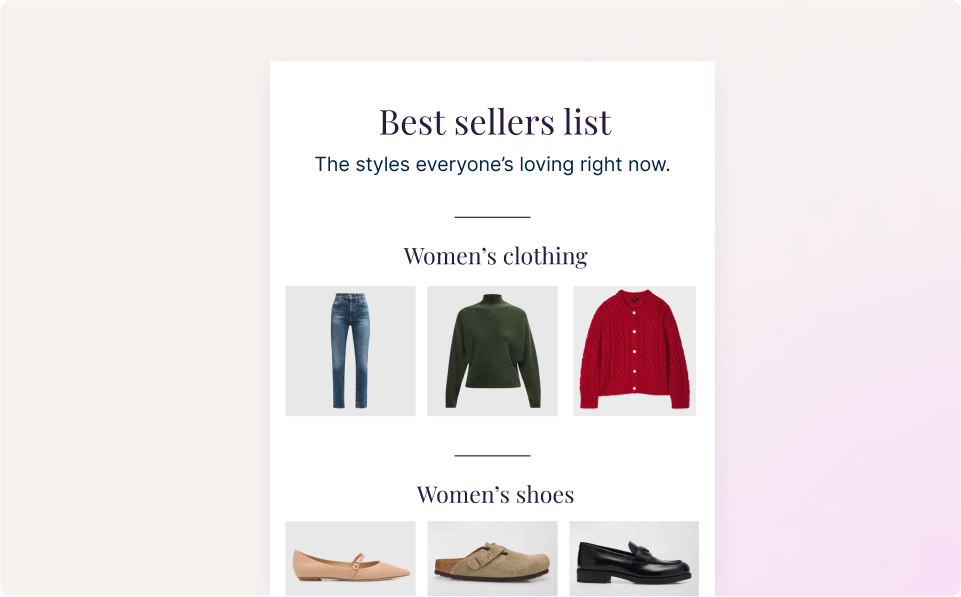 Think of the products featured in your winback messaging. You’re likely sharing some familiar favorites, reminding the customer what they loved about your brand last time. And you should!
